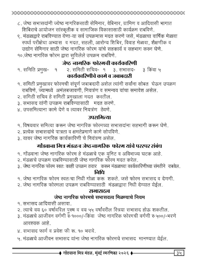 १. गोंडवाना मित्र मंडळाचे ज्येष्ठ सभासद ज्यांनी वार्षिक वर्गणी नियमितपणे भरलेली असेल त्यांना आपोआप सभासदत्व प्राप्त होईल .